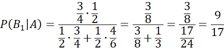 Wyznacz prawdopodobieństwo tego, że wylosowana kula pochodzi z pierwszej urny, jeśli wiadomo, że jest ona czarna, jeśli w pierwszej urnie jest 1 kula biała i 3 kule czarne, a w drugiej urnie są 2 kule białe i 4 kule czarne.