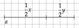 Spójrz na poniższą konstrukcję symetralnej odcinka, czyli podziale go na dwie równe części i na tej podstawie konstruktywnie podziel odcinki