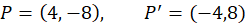 Aby ustalić współrzędne punktu odbitego względem początku układu współrzędnych musisz przed każdą współrzędną dopisać znak „
