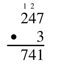 Mnożąc przez liczby jednocyfrowe pisemnie, obliczenia rozpocznij od rzędu jedności i idź kolejno przez wszystkie cyfry. Jeśli z mnożenia liczb wychodzi liczba dwucyfrowa to cyfrę jedności zapisz pod kreską ułamkową, a cyfrę dziesiątek nad następną cyfrą górnej liczby.