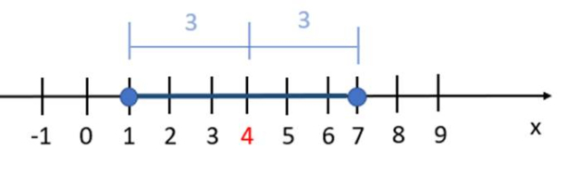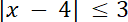 Należy zaznaczyć wszystkie punkty na osi liczbowej, których odległość od 4 jest nie mniejsza niż 3, czyli do zbioru należą wszystkie punkty ze zbioru: