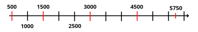 Na tej osi liczbowej odcinek jednostkowy wynosi 500.
