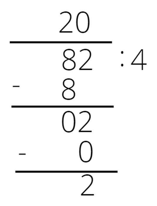 Sprawdź, ile razy mieści się pierwsza cyfra w dzielniku. Wynik zapisz nad kreską nad naszą cyfrą. Pomnóż zapisaną liczbę przez dzielnik i zapisz wynik pod pierwszą cyfrą. Zapisz pod tą liczbą kreskę i odejmij powyższe dwie liczby. Do uzyskanego wyniku dopisz kolejną cyfrę dzielnej i znowu sprawdź, ile razy mieści się ta liczba w dzielniku. Wynik zapisz nad kreską nad naszą cyfrą. Pomnóż zapisaną liczbę przez dzielnik i zapisz wynik pod drugą cyfrą. Zapisz pod tą liczbą kreskę i odejmij powyższe dwie liczby. Jeśli różnica jest różna od zera, to jest to reszta z dzielenia.