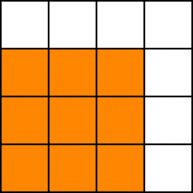 Narysuj kwadrat, podziel go na 16 kratek i pomaluj 9 z nich.