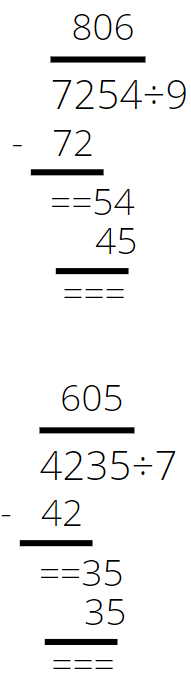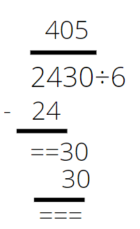 Sprawdź, ile razy mieści się 6 w 24. Odpowiedź to 4. Wpisujemy ją ponad kreskę od prawej strony. Mnożymy otrzymaną czwórkę razy dzielnik i wpisujemy od prawej strony pod dzielną. Odejmujemy i widzimy, że reszta z tego dzielenia to 0. Wpisujemy nad kreską zero i „zrzucamy” dwie cyfry z dzielnej. Sprawdź, ile razy w powstałej liczbie zmieści się sześć. Odpowiedź to 5.