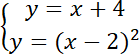 Układ równań rozwiążemy metodą podstawiania. Do drugiego równania w miejsce y podstawimy x + 4.
