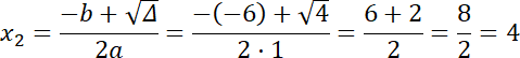 ∆ = b2 – 4ac = (–6)2 – 4 · 1 · 8 = 4