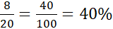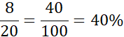 W pierwszym kroku policz, ile jest brązowych kaczek. Jest ich 8. Następnie podziel liczbę brązowych kaczek przez liczbę wszystkich ptaków w stawie. Otrzymujemy następujące działanie:.