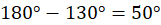 Zauważ, że miara pozostałych 2 kątów będzie wynosić łącznie 130°. Miara 1 kąta: