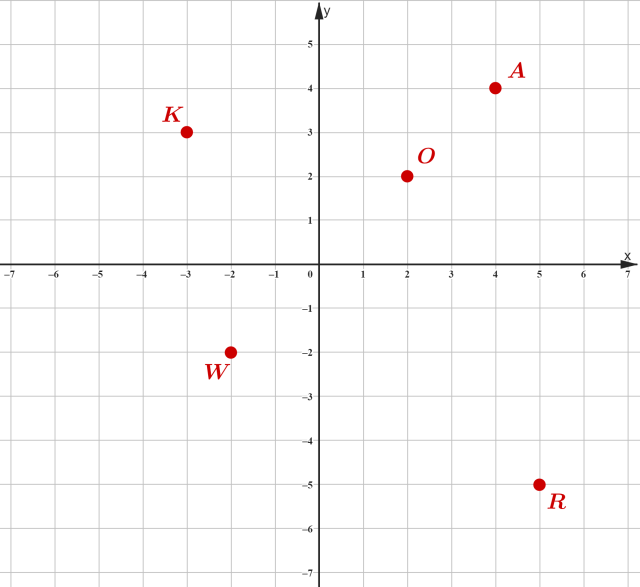 Pamiętaj, że pierwszą współrzędną z każdej pary odczytujesz z osi x, a drugą z osi y.