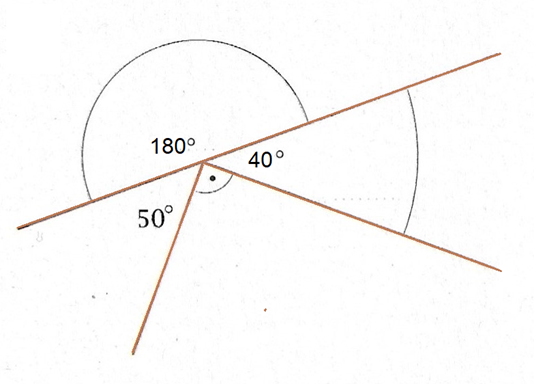 Wartość kąta półpełnego jest równa 180 stopni. Po drugiej stronie do dopełnienia do kąta półpełnego brakuje 40 stopni.