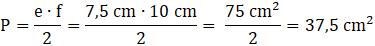 Po wymnożeniu długości przekątnych i podzieleniu przez 2 otrzymałeś pole rombu.