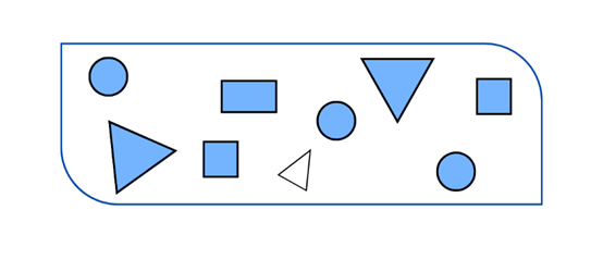 Prawdopodobieństwo wybrania niebieskiego trójkąta jest trzy razy mniejsze niż prawdopodobieństwo wylosowania niebieskiej figury.
