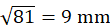 Mając podany kwadrat o polu 81 mm2, policz jego obwód.