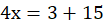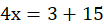 Rozwiąż równanie 4x - 3 = 15, a następnie sprawdź rozwiązanie.