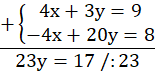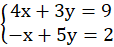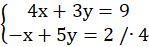 Pomnóż drugie równanie przez 4, aby otrzymać przy niewiadomej x liczby przeciwne, a następnie dodaj do siebie równania.