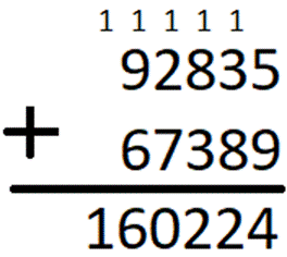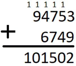 Każdą liczbę z jednego działania musisz dodać do odpowiadającej jej cyfry z drugiej działania, tak więc cyfrę setek dodajesz do cyfry setek, cyfrę dziesiątek do cyfry dziesiątek i cyfrę jedności do cyfry jedności. Jednak jeżeli liczba, która odpowiada za cyfrę jedności, będzie większa od 10, wtedy dodajemy jeden co cyfry dziesiątek. I tak analogicznie: jeżeli cyfra dziesiątek jest większa od 10, to wtedy dodajemy jeden do cyfry setek itd.