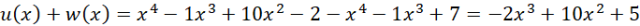 Wymyśl dowolny wielomian u(x), który będzie wielomianem stopnia 4, następnie wymyśl dowolny wielomian w(x), który będzie wielomianem stopnia 4 takim, że współczynnik