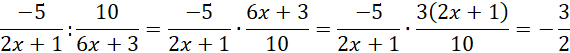Pomnóż przez odwrotność. Wyłącz odpowiednie czynniki w wyrażeniu i skróć.
