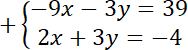 Wyznacz rozwiązanie układu równań metodą przeciwnych współczynników.