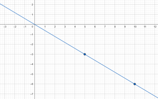 Następnie zaznacz uzyskane punkty w układzie współrzędnych i narysuj prostą przechodzącą przez nie, czyli wykres funkcji