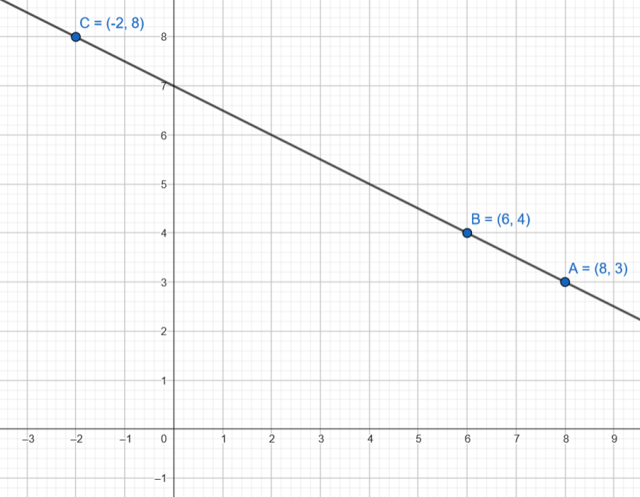 Sprawdź, czy punkty A(8,3), B(6,4), C(-2,8) leżą na jednej linii.