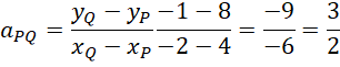 Skorzystaj ze wzoru na współczynnik kierunkowy prostej i oblicz jego wartość dla podanych punktów P i Q oraz R i S.