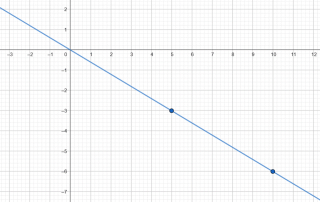 Następnie zaznacz uzyskane punkty w układzie współrzędnych i narysuj prostą przechodzącą przez nie, czyli wykres funkcji