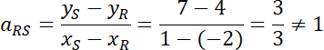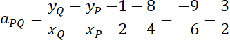 Skorzystaj ze wzoru na współczynnik kierunkowy prostej i oblicz jego wartość dla podanych punktów P i Q oraz R i S.