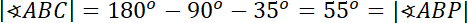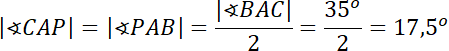 Następnie zauważ, że dwusieczna dzieli kąt na dwa o takiej samej mierze i na tej podstawie oblicz miary kątów CAP i PAB.