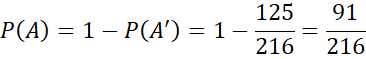 Wyznacz prawdopodobieństwo tego, że przynajmniej raz otrzymamy 6 oczek, jeśli rzucono 3 razy kostką.
