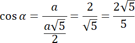 Skorzystaj z twierdzenia Pitagorasa, aby wyznaczyć wysokość podanego przekroju, a następnie z funkcji cosinus w trójkącie prostokątnym i oblicz jego wartość dla podanego kąta.
