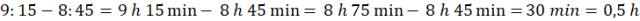 Oczytaj, kiedy wykres był stały, czyli nie rósł ani nie malał. Jest to czas, w którym uczestnicy wycieczki byli na postoju. Zauważ, że zaczął się on o 8:45, a skończył o 9:15. Oblicz, ile czasu trwała przerwa.