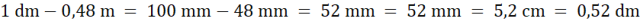 Oblicz różnicę 1 dm – 0,48 dm; zasugeruj się rozwiązaniem w przykładzie 2.
