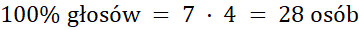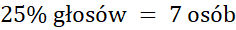 Odpowiedz na pytania, wykonując obliczenia w pamięci, ile osób brało udział w głosowaniu jeśli 7 osób jest równe 25% głosów.