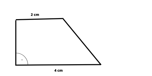 W tym zadaniu musisz narysować trapez prostokątny, którego dolna podstawa ma długości 4 cm, a górna podstawa mierzy 2 cm.