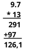 Ułamki dziesiętne mnożymy pisemnie przez liczby naturalne tak, jak mnożylibyśmy liczby naturalne, a dopiero w wyniku oddzielamy przecinkiem tyle miejsc, ile ich było w liczbie dziesiętnej.