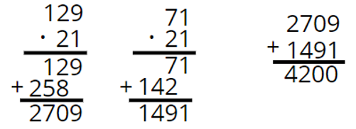 129 ∙ 21 + 71 ∙ 21 = 2709 + 1491 = 4200