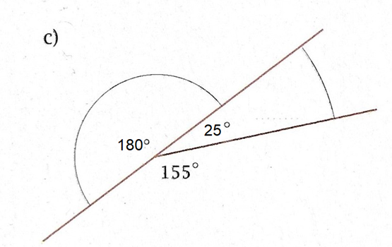 Do kąta półpełnego brakuje 25 stopni, więc taka będzie wartość kąta ostrego.