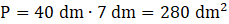 Musisz policzyć pole prostokąta o wymiarach 4 m na 7 dm, czyli wymnożyć te cyfry.