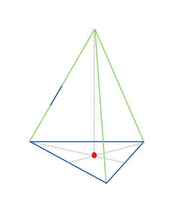 Pamiętaj, że spodek wysokości znajduje się na przecięciu wysokości trójkąta równobocznego. W przypadku innych trójkątów spodek leży na przecięciu dwusiecznych kąta. Czerwony punkt na rysunku to spodek wysokości.