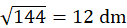 Mając podany kwadrat o polu 144 dm2, policz jego obwód.