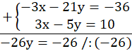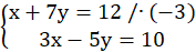 Pomnóż pierwsze równanie przez (-3), aby otrzymać przy niewiadomej x liczby przeciwne, a następnie dodaj do siebie równania.