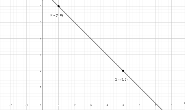 Prosta f przechodzi przez punkty P(1, 6) i Q(5, 2). Napisz, jaki jest znak współczynnika kierunkowego tej prostej.