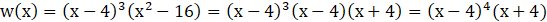 Korzystamy ze wzoru skróconego mnożenia, żeby rozłożyć wielomian na czynniki. Krotność pierwiastka wielomianu określa potęga nawiasu, który zeruje dany pierwiastek.