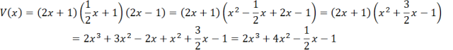 Wyznacz wielomian zmiennej x opisujący objętość prostopadłościanu o podanych krawędziach. Skorzystaj ze wzoru: