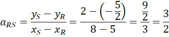 Skorzystaj ze wzoru na współczynnik kierunkowy prostej i oblicz jego wartość dla podanych punktów P i Q oraz R i S.