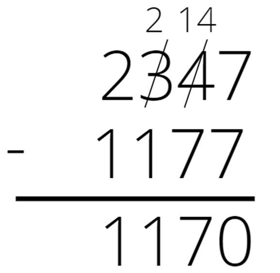 Zapisz liczby jedna pod drugą. Odejmuj kolumnami. Jeśli cyfra górna jest mniejsza od dolnej, to dodaj do niej 10, a cyfrę po lewej stronie zmniejsz o 1 i wykonaj odejmowanie na nowo powstałych liczbach.