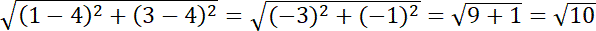 K1: (x – 4)2 + (y – 4)2 = 40, K2: (x – 1)2 + (y – 3)2 = 10