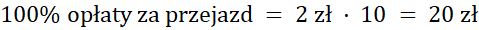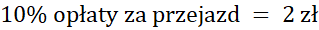 Odpowiedz na pytania, wykonując obliczenia w pamięci, ile kosztuje przejazd, jeśli 10 % opłaty jest równe 2 zł.
